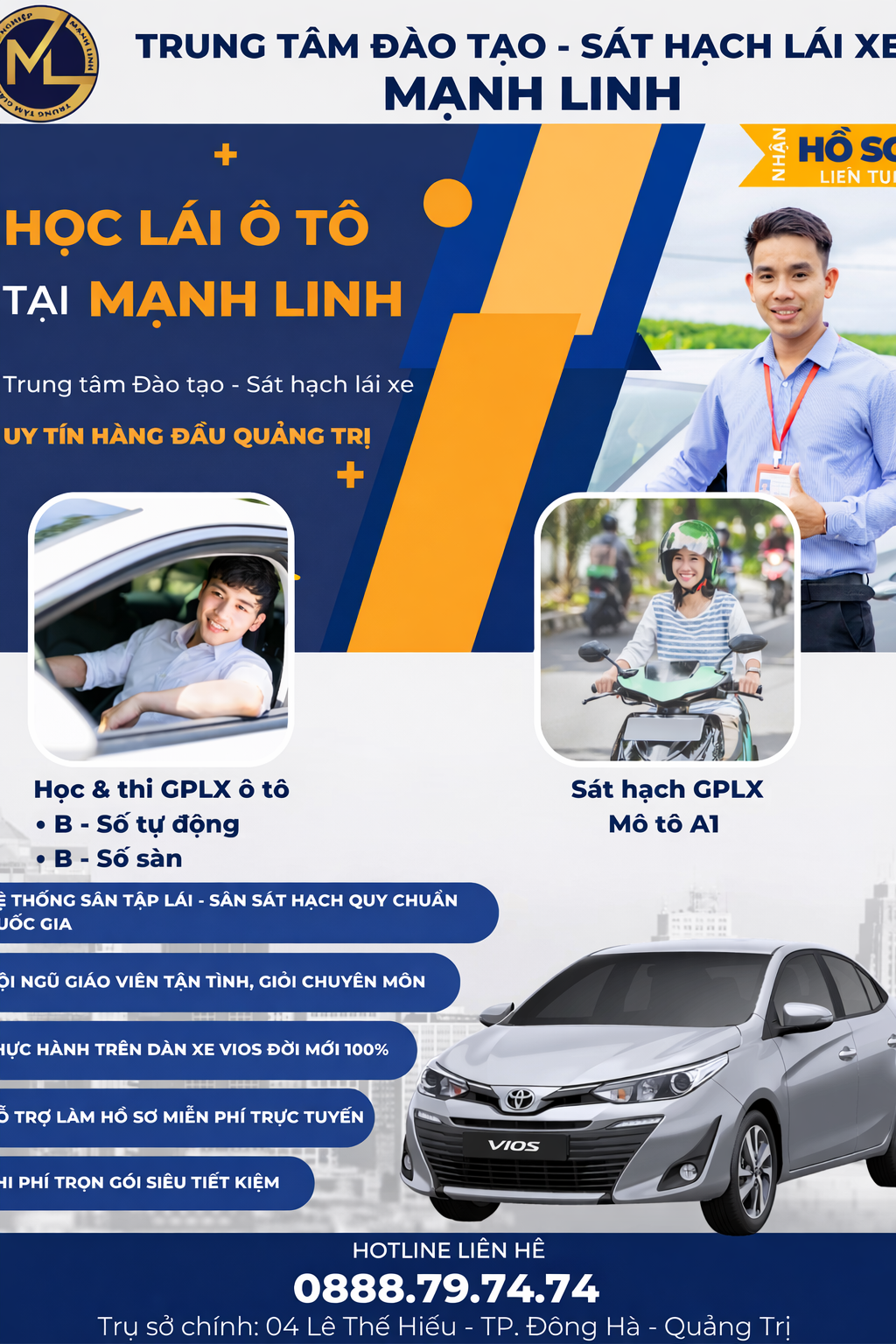 Học viên được học lái xe B số sàn bài bản từ học số nguội trên xe không nổ máy, học số nóng trên xe có nổ máy, học cách cách đánh lái trả lái, cách tiền lùi trong đường thẳng, các kỹ thuật dừng xe trên dốc, ghép xe dọc, ghép xe ngang..học lái xe trong sa hình, học lái xe trên đường.